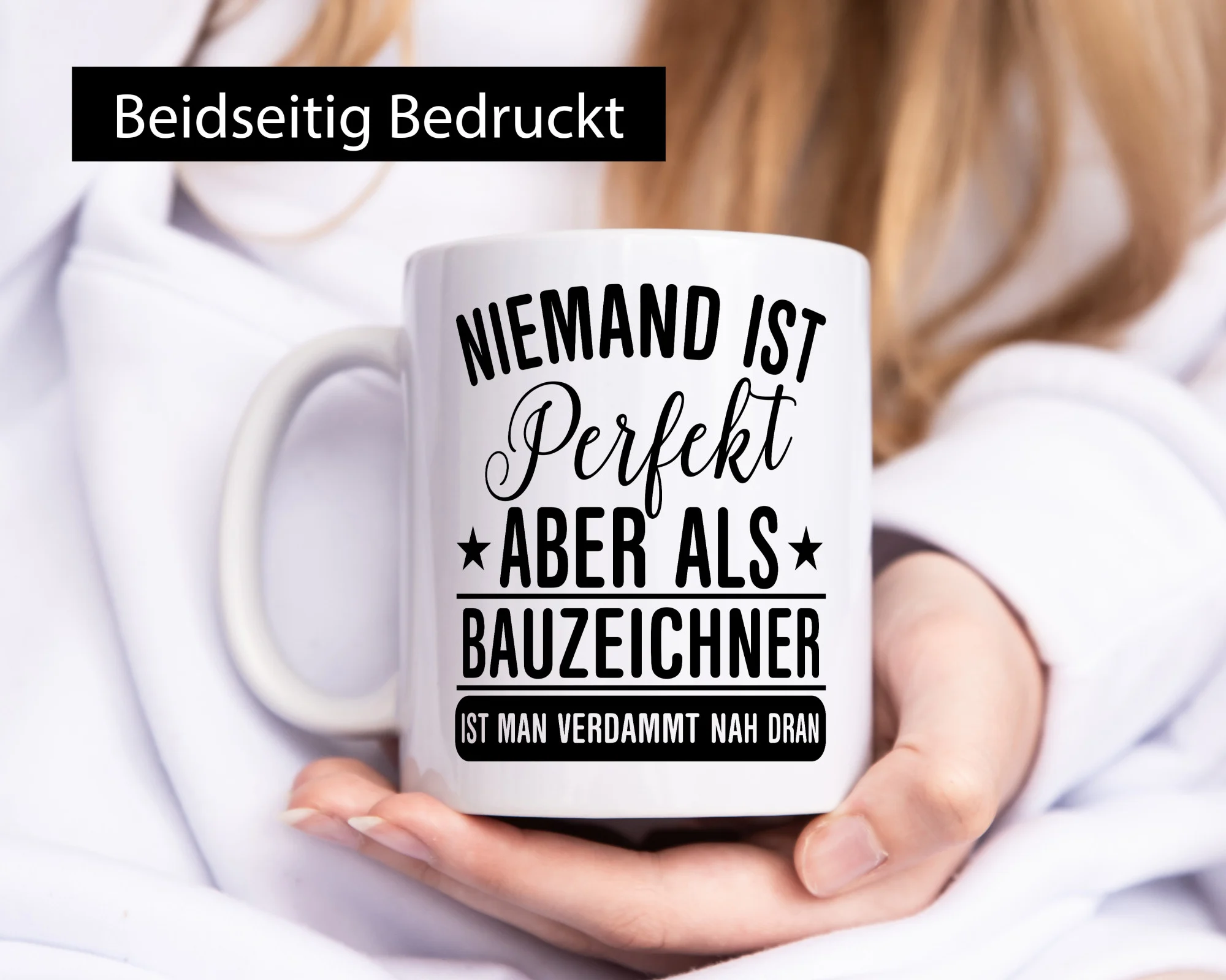 Verdammt nah dran: Bauzeichner | Zeichner – Tasse Weiß – Kaffeetasse / Geschenk / Familie