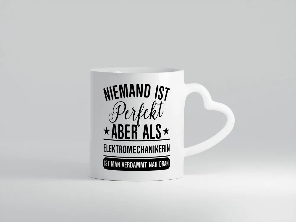 Verdammt nah dran: Elektromechanikerin | Mechanikerin – Herzhenkel Tasse – Kaffeetasse / Geschenk / Familie