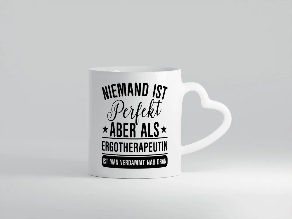 Verdammt nah dran: Ergotherapeutin | Ergotherapie – Herzhenkel Tasse – Kaffeetasse / Geschenk / Familie