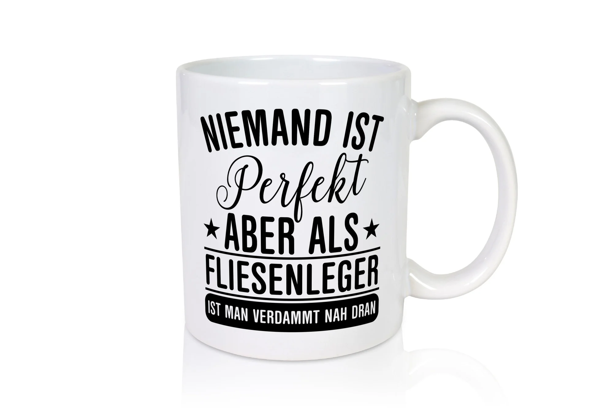 Verdammt nah dran: Fliesenleger | Fliesenlegen | Bau – Tasse Weiß – Kaffeetasse / Geschenk / Familie