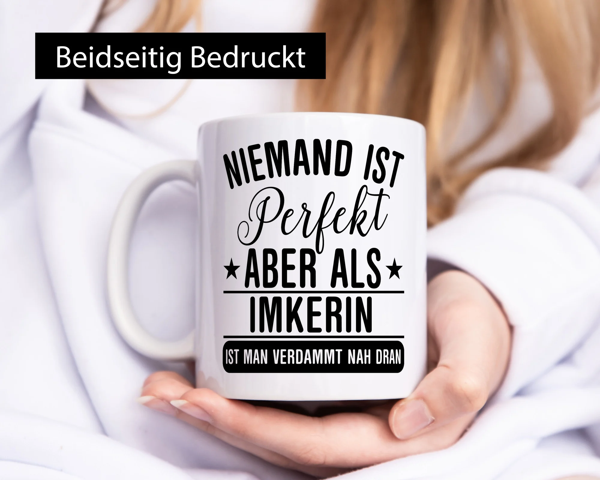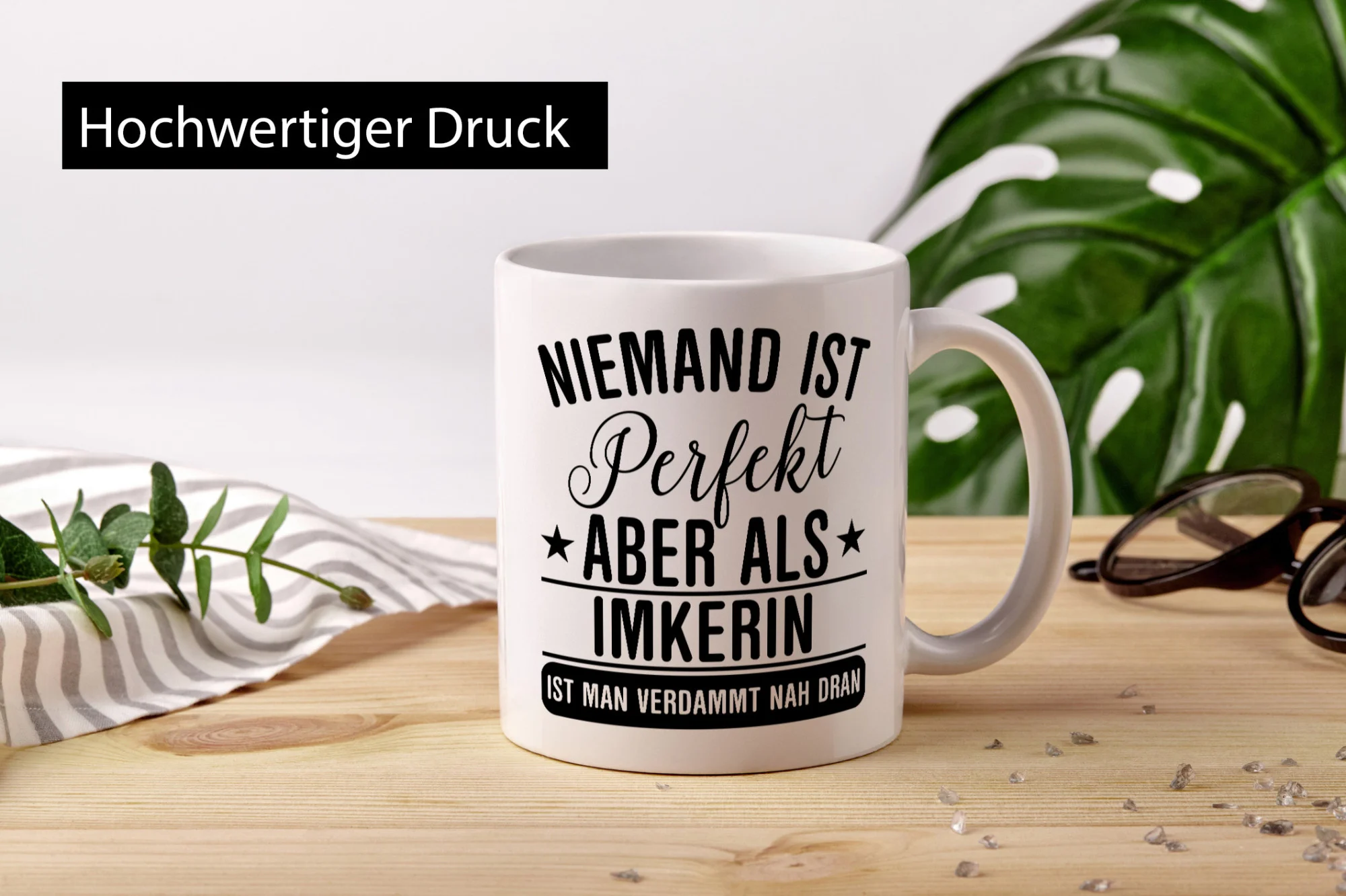 Verdammt nah dran: Imkerin | Imkerei – Tasse Weiß – Kaffeetasse / Geschenk / Familie