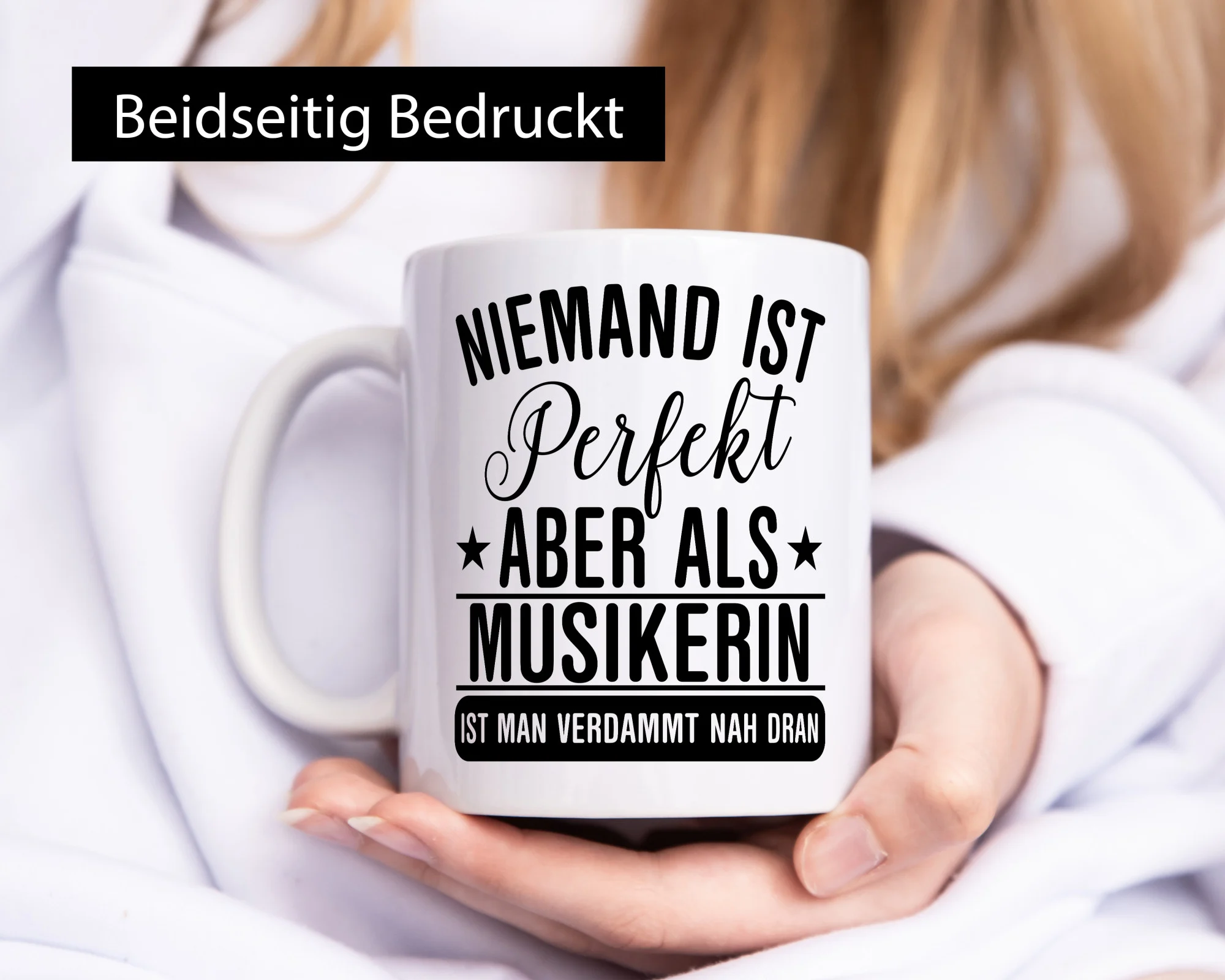Verdammt nah dran: Musikerin | Musik | Musikantin – Tasse Weiß – Kaffeetasse / Geschenk / Familie