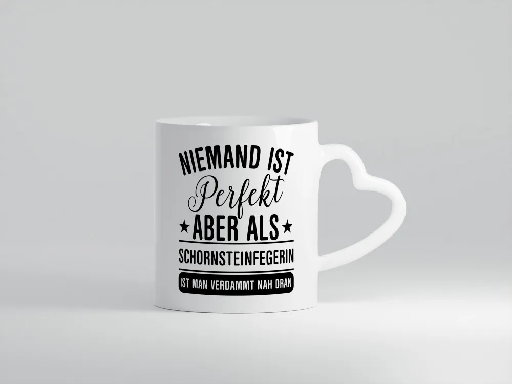 Verdammt nah dran: Schornsteinfegerin | Kaminkehrer – Herzhenkel Tasse – Kaffeetasse / Geschenk / Familie