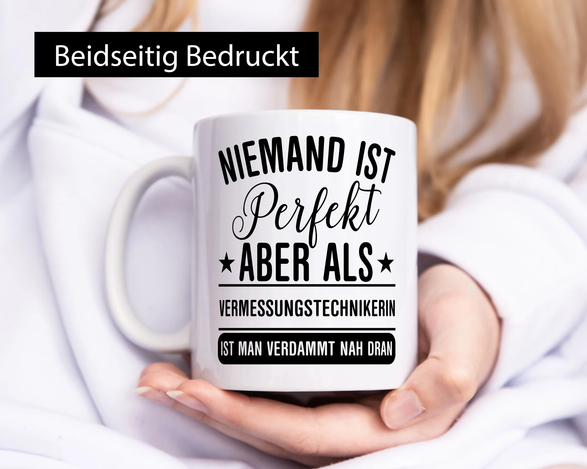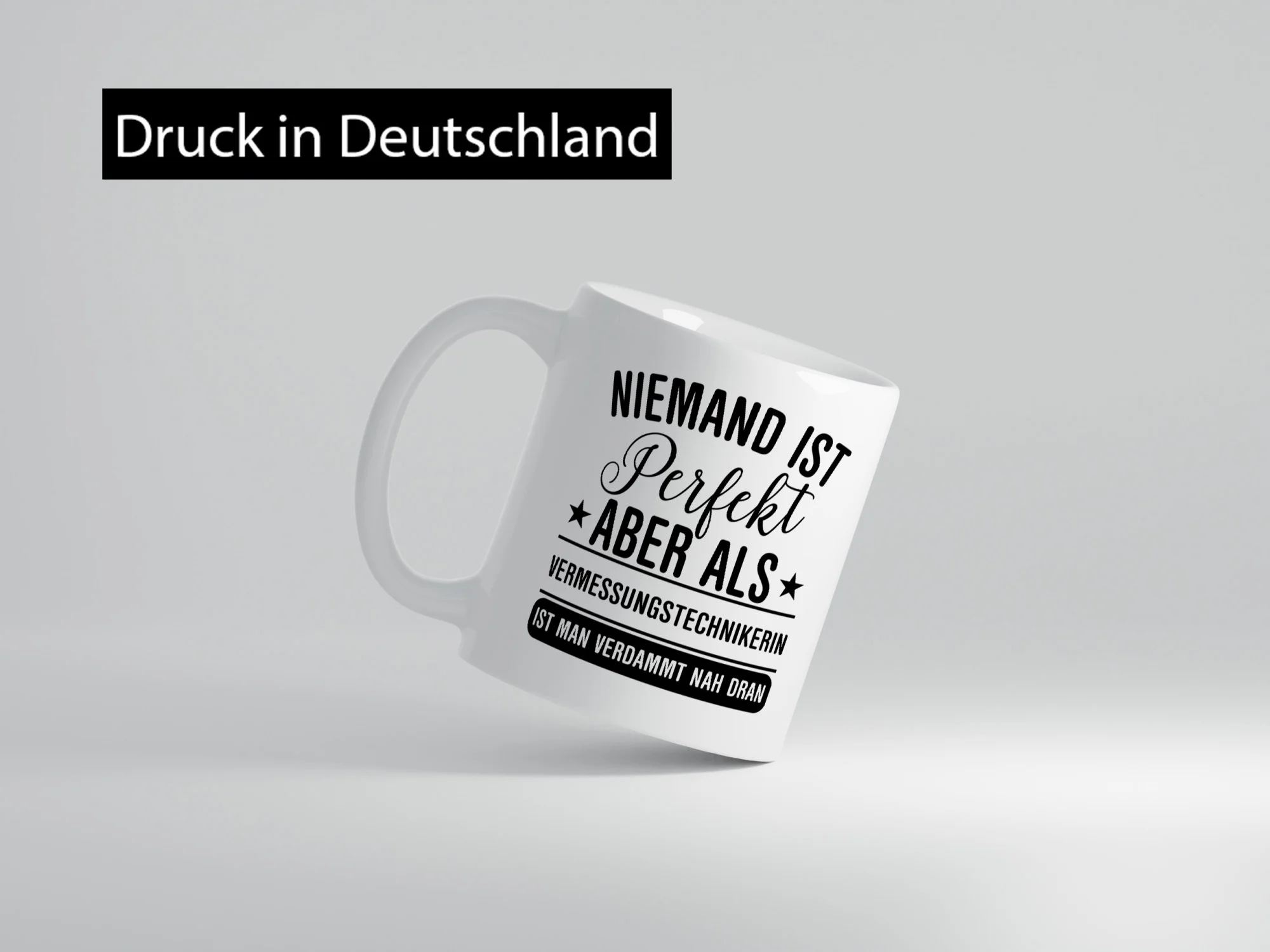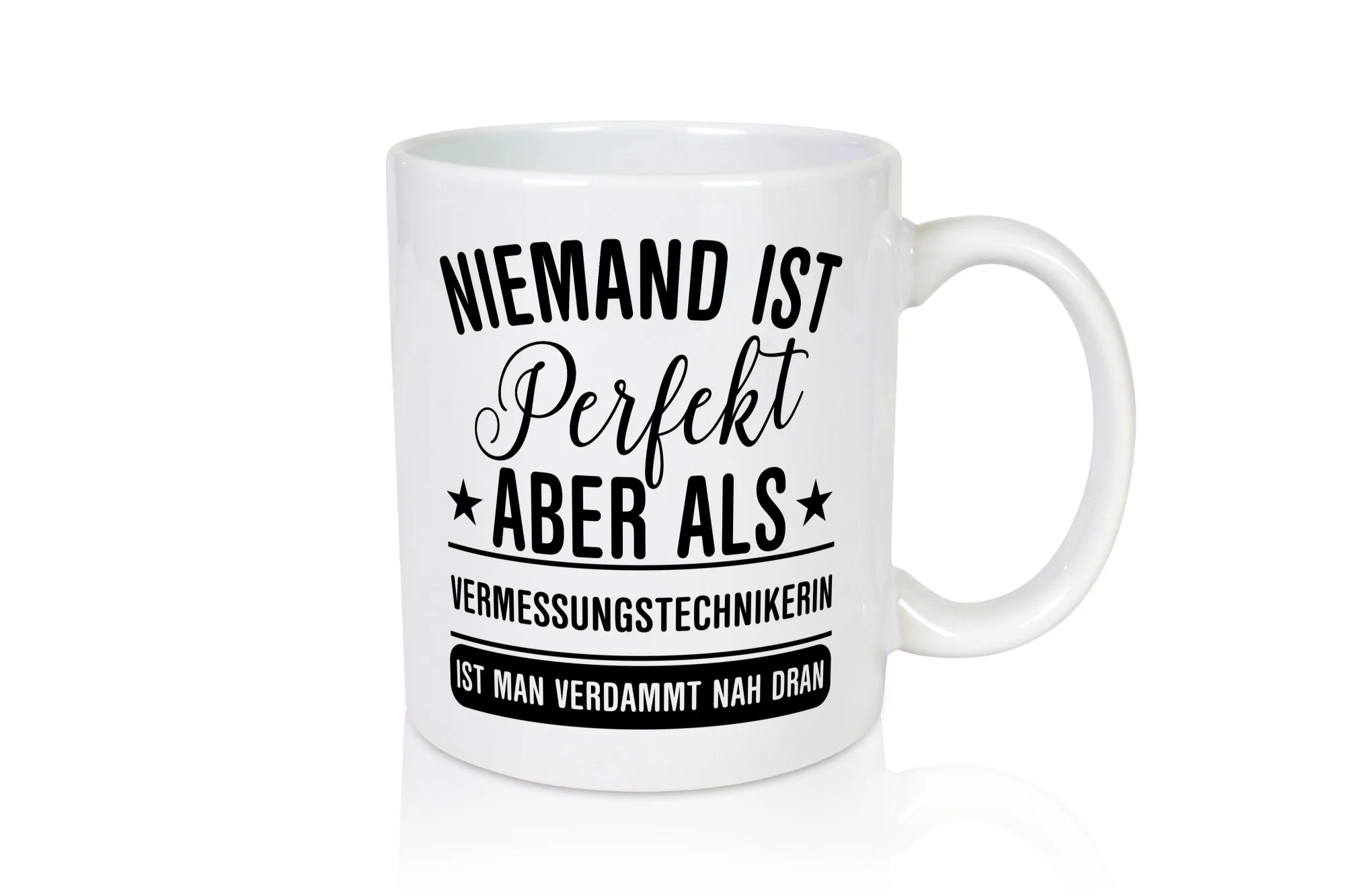 Verdammt nah dran: Vermessungstechnikerin | Techniker – Tasse Weiß – Kaffeetasse / Geschenk / Familie