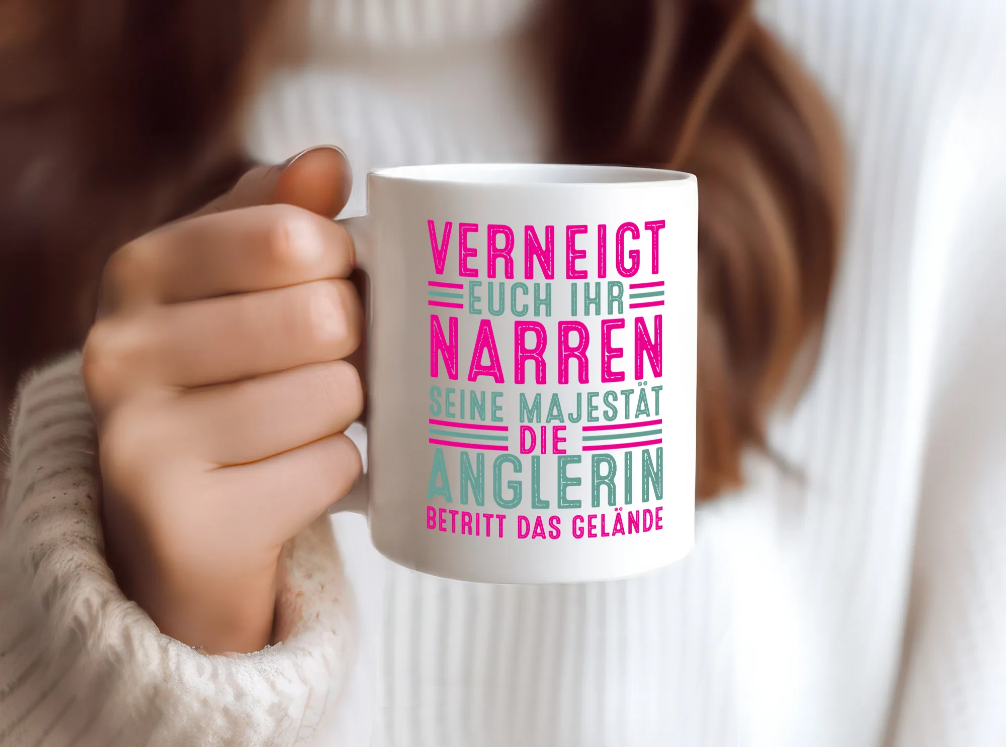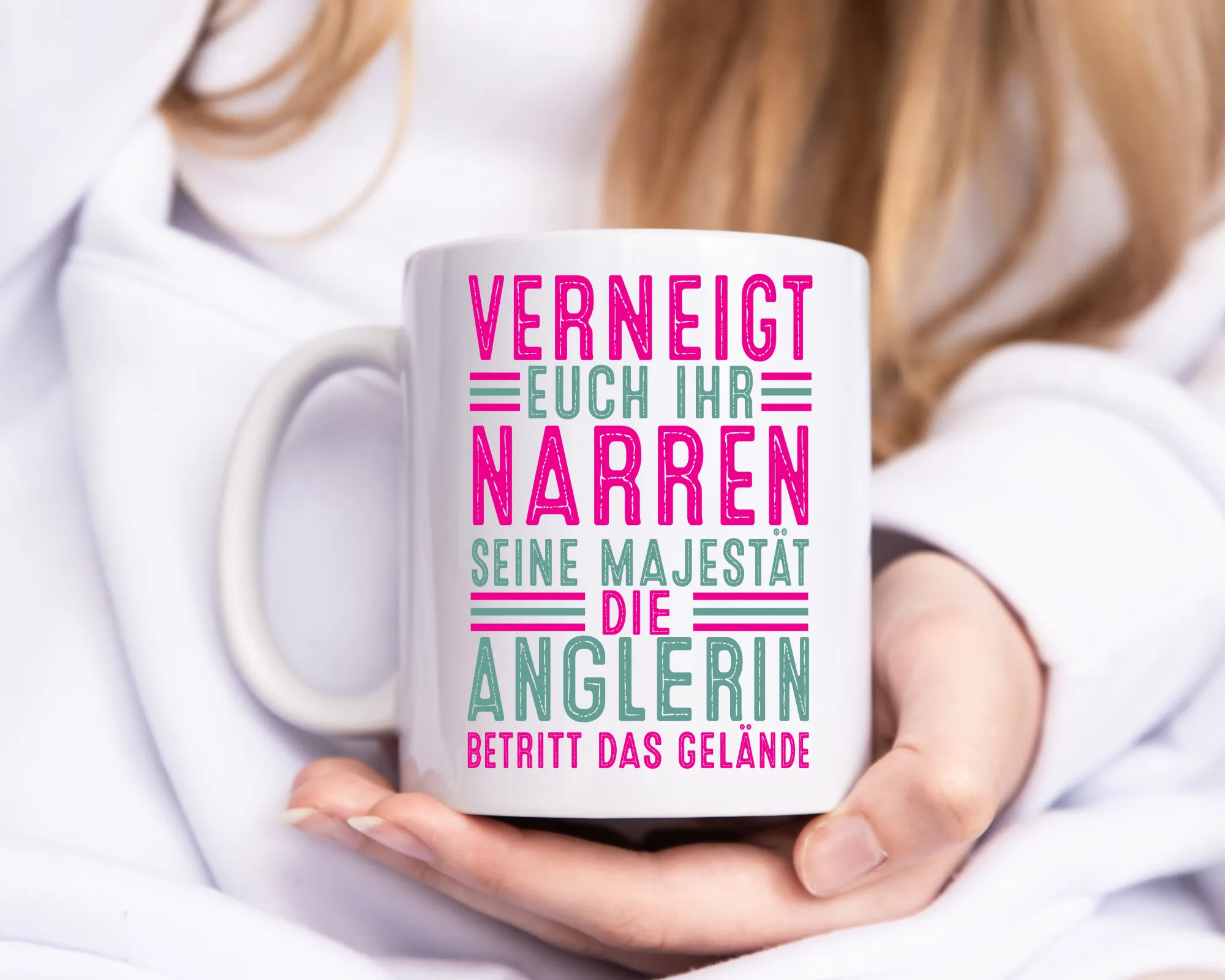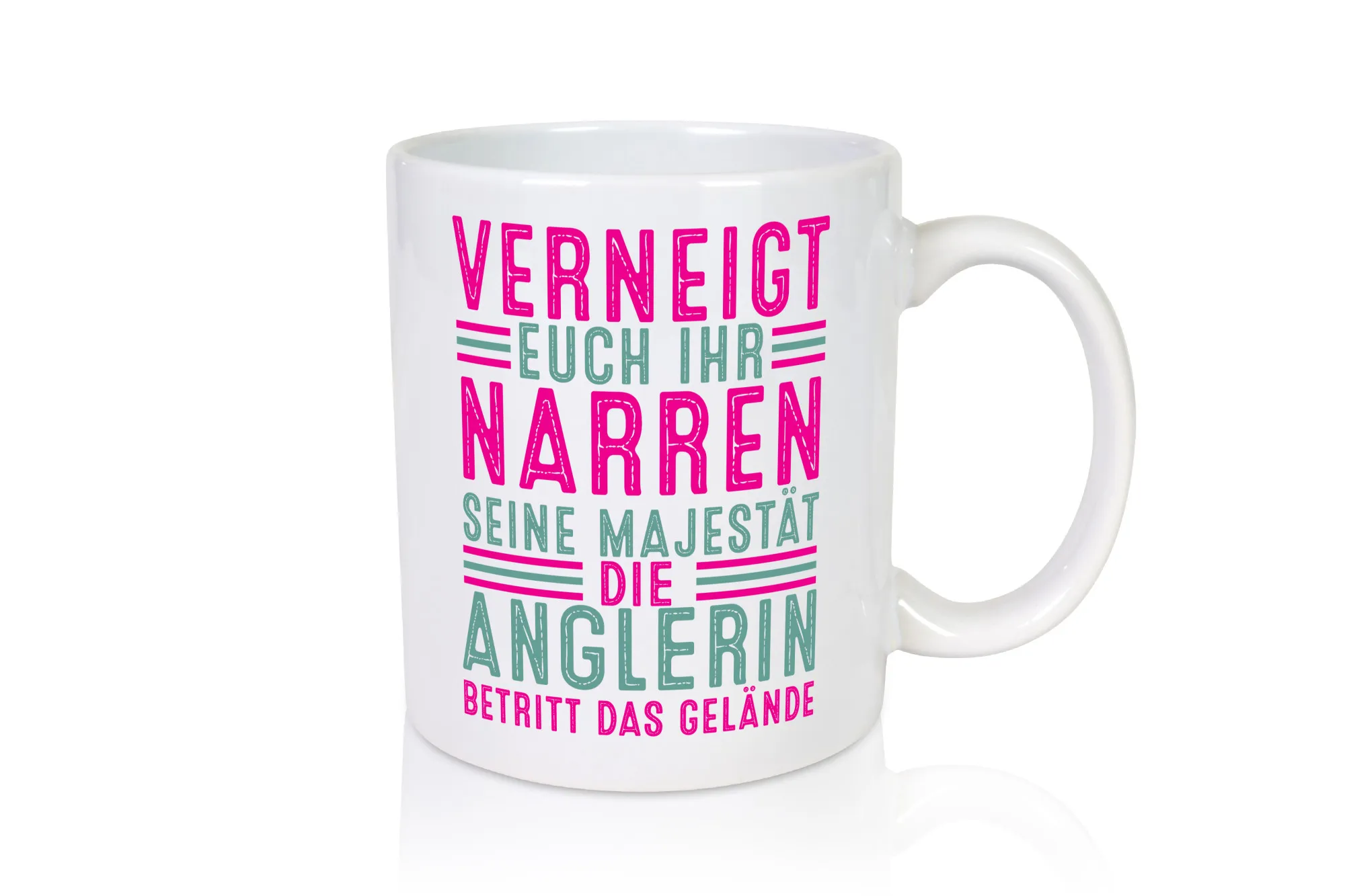 Verneigt euch: Anglerin | Angeln | Fischerin – Tasse Weiß – Kaffeetasse / Geschenk / Familie