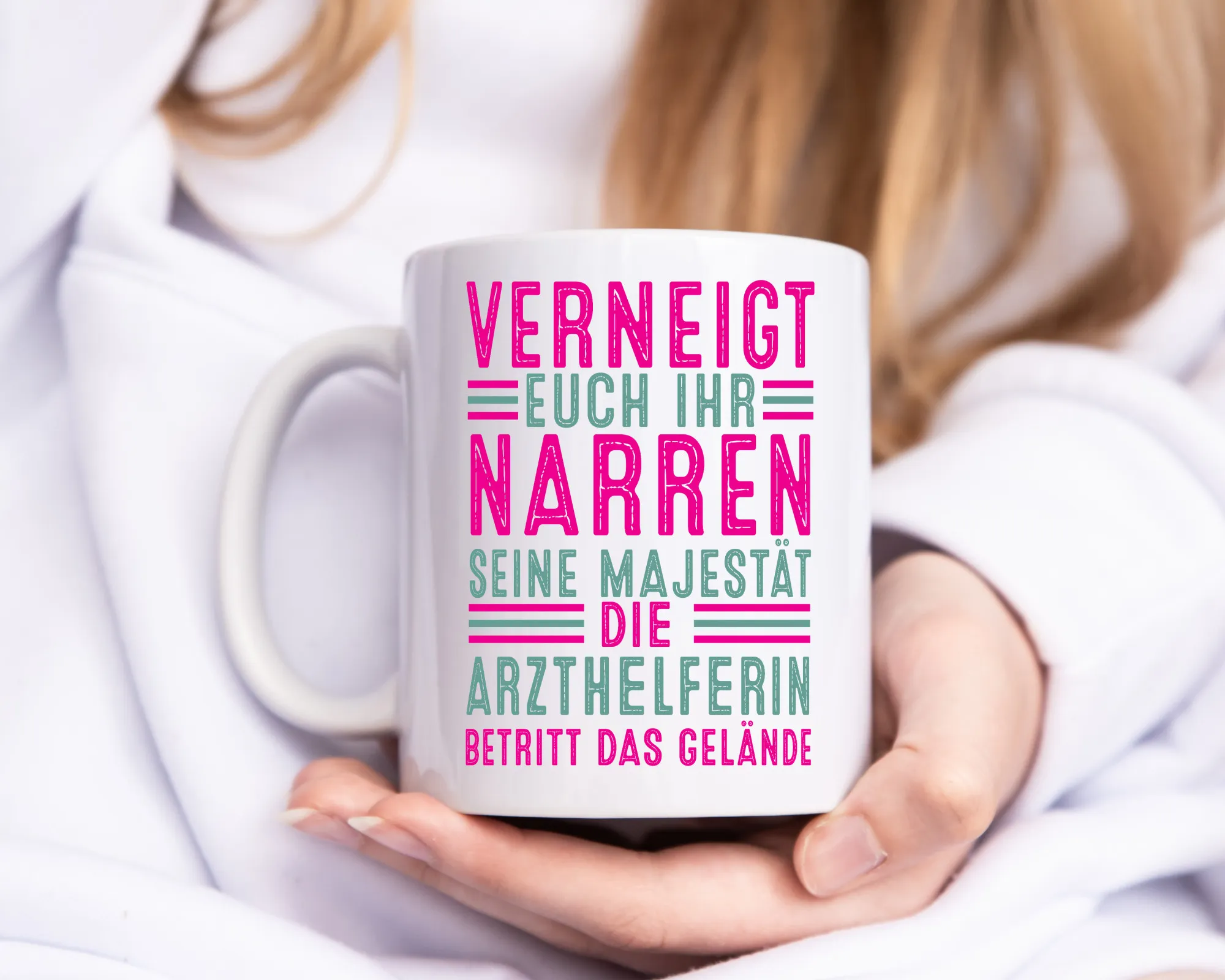 Verneigt euch: Arzthelferin | Fachangestellte Medizin – Tasse Weiß – Kaffeetasse / Geschenk / Familie