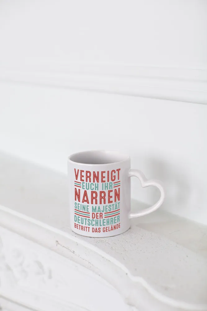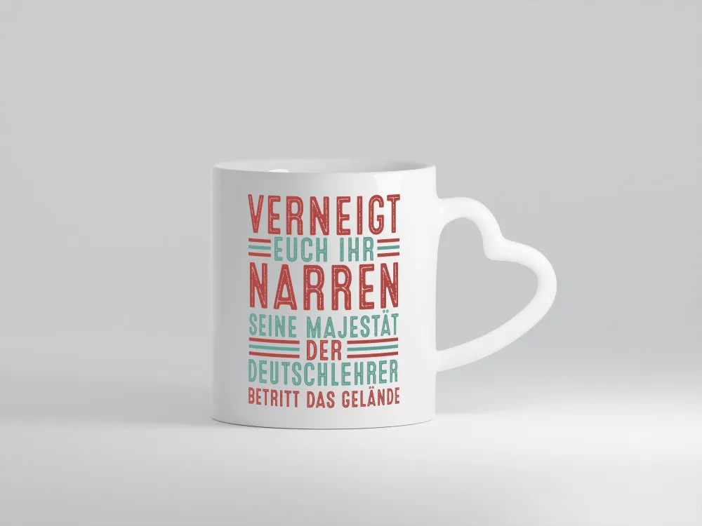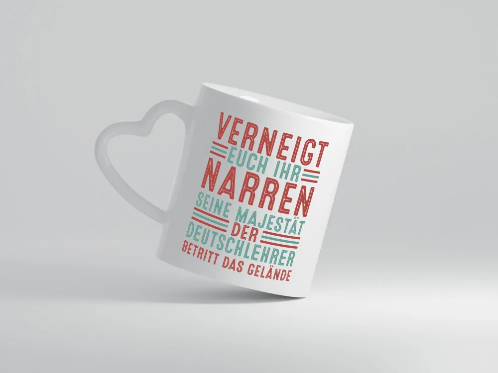 Verneigt euch: Deutschlehrer | Lehrer | Schule – Herzhenkel Tasse – Kaffeetasse / Geschenk / Familie