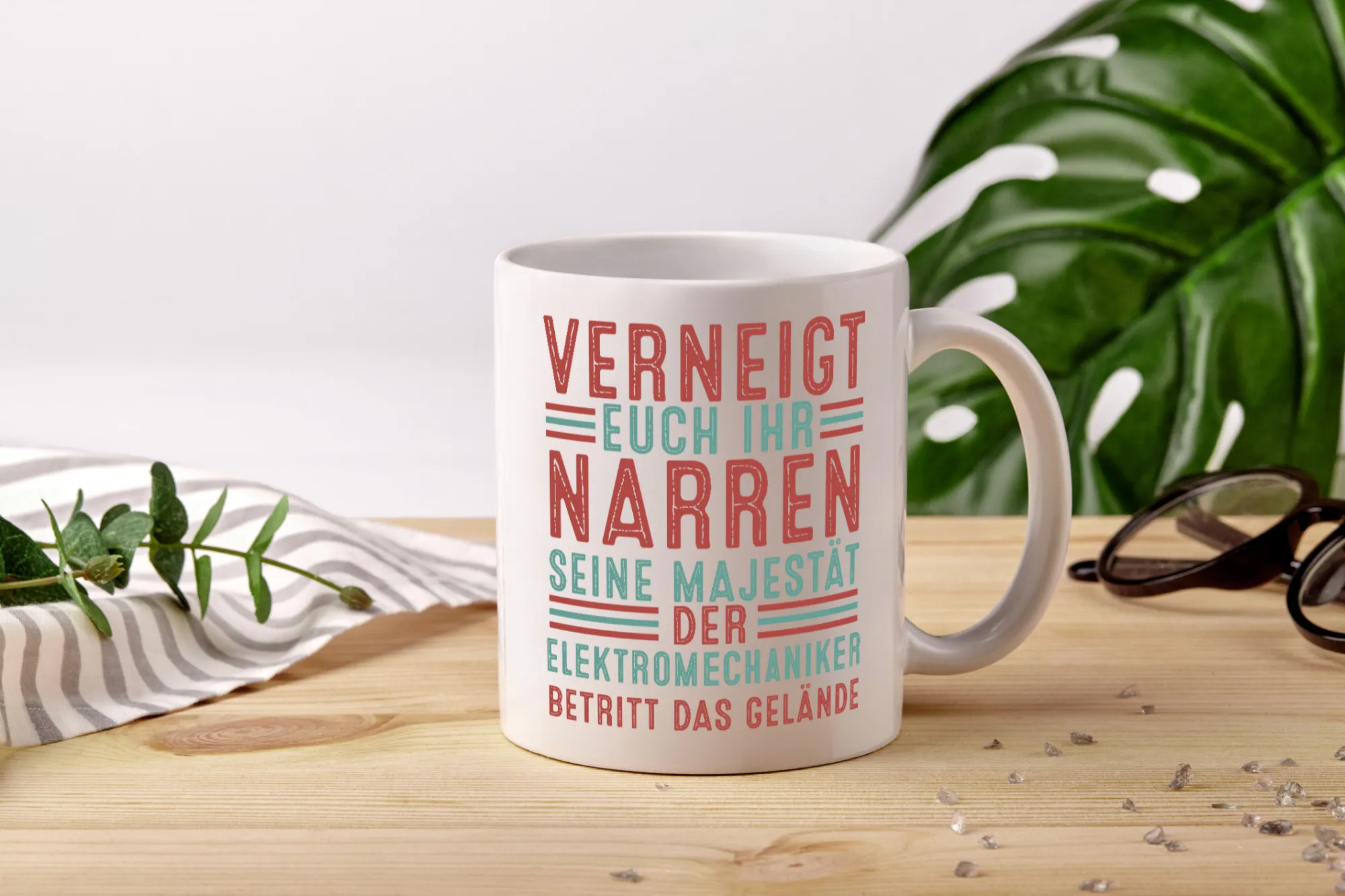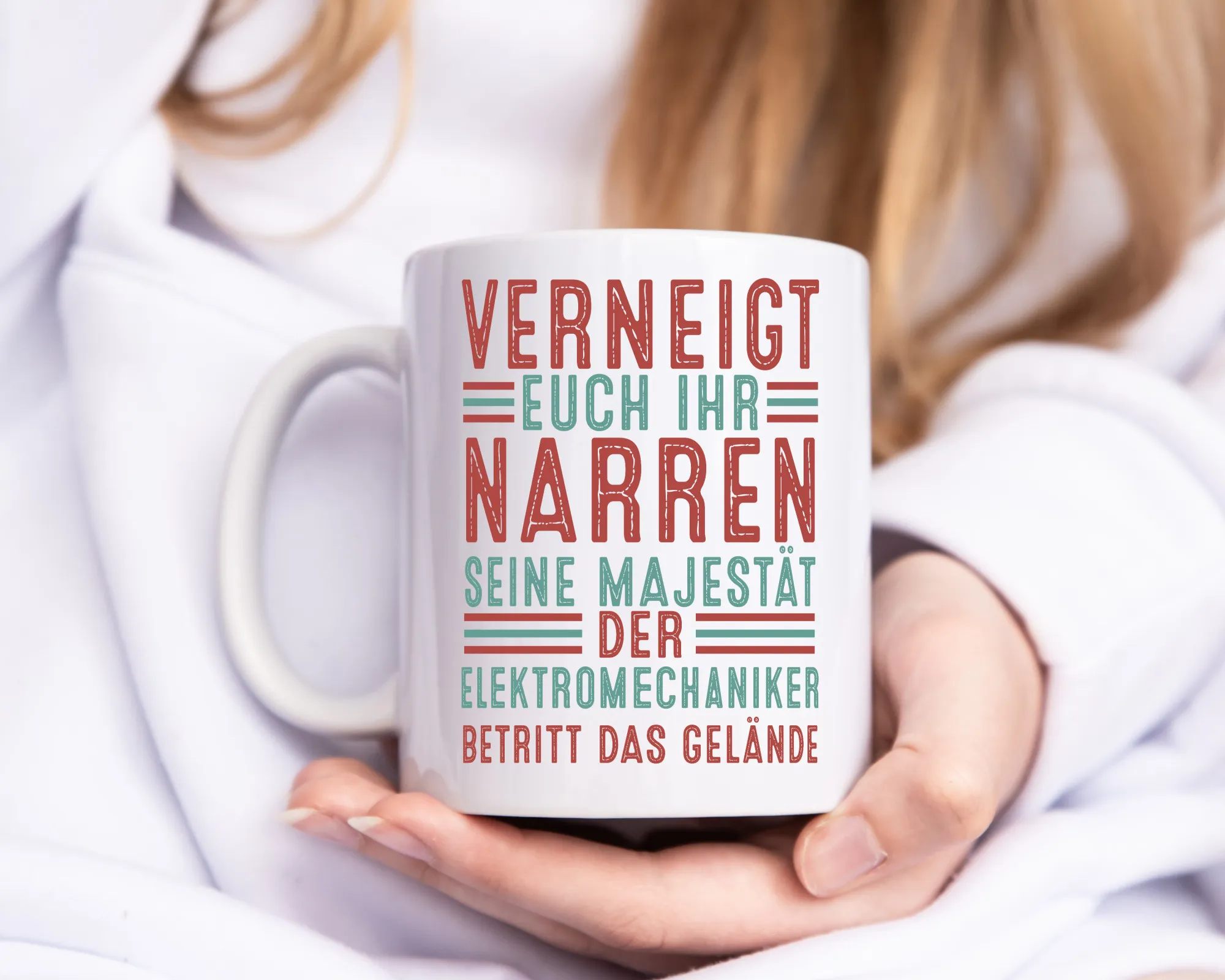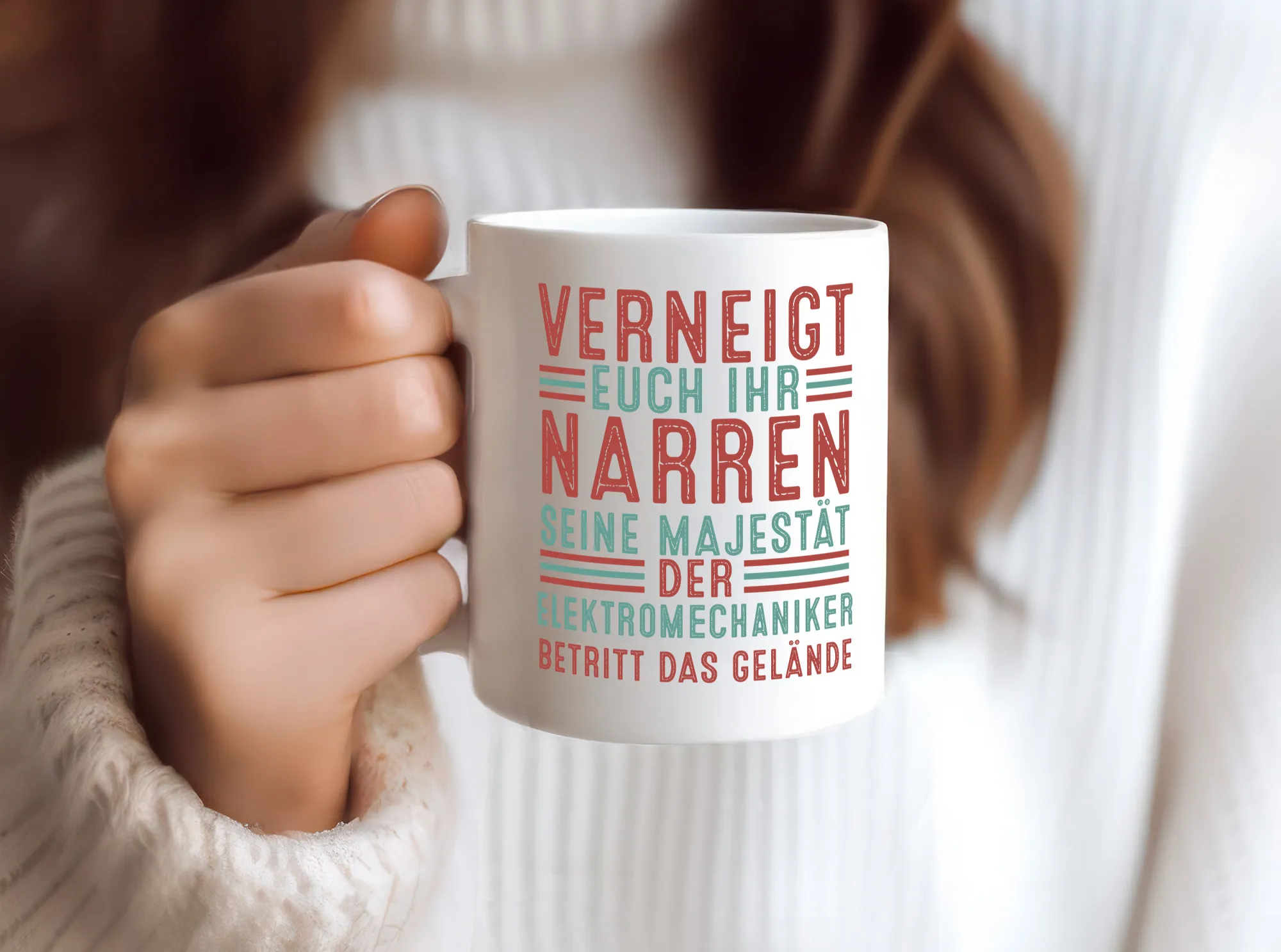 Verneigt euch: Elektromechaniker | Mechaniker v2 – Tasse Weiß – Kaffeetasse / Geschenk / Familie