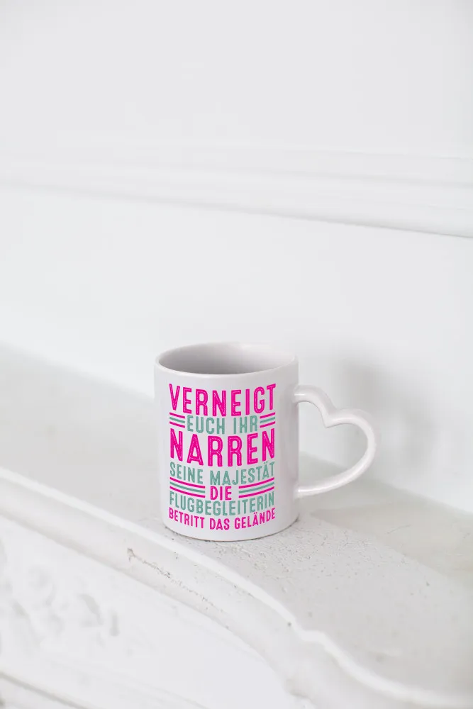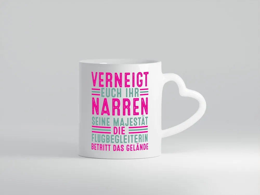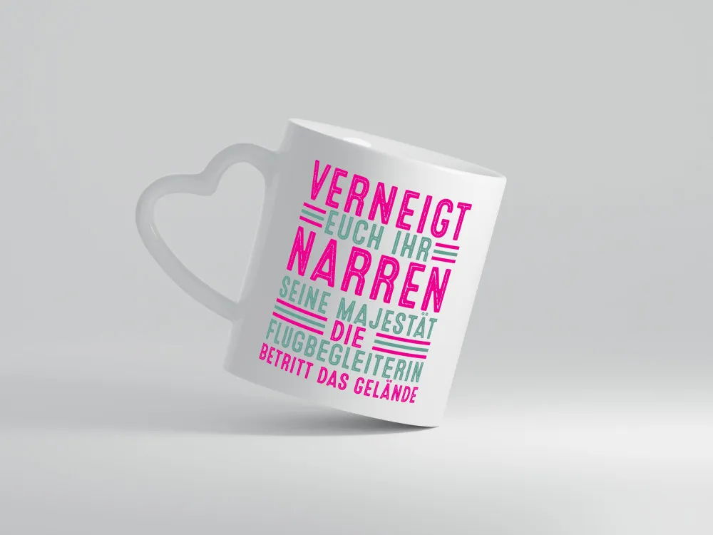 Verneigt euch: Flugbegleiterin | Stewardess | Flughafen – Herzhenkel Tasse – Kaffeetasse / Geschenk / Familie