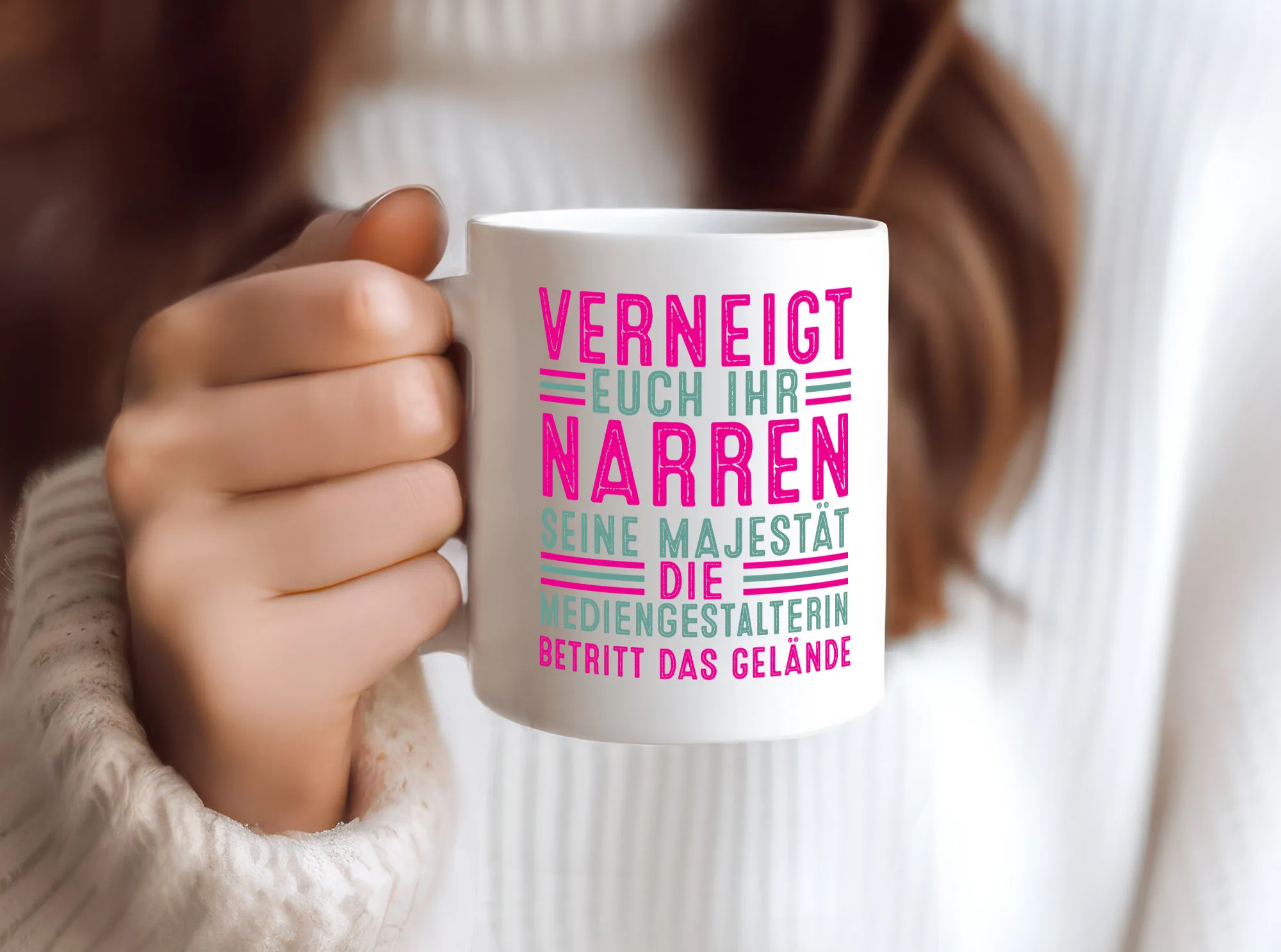 Verneigt euch: Mediengestalterin | Medien – Tasse Weiß – Kaffeetasse / Geschenk / Familie