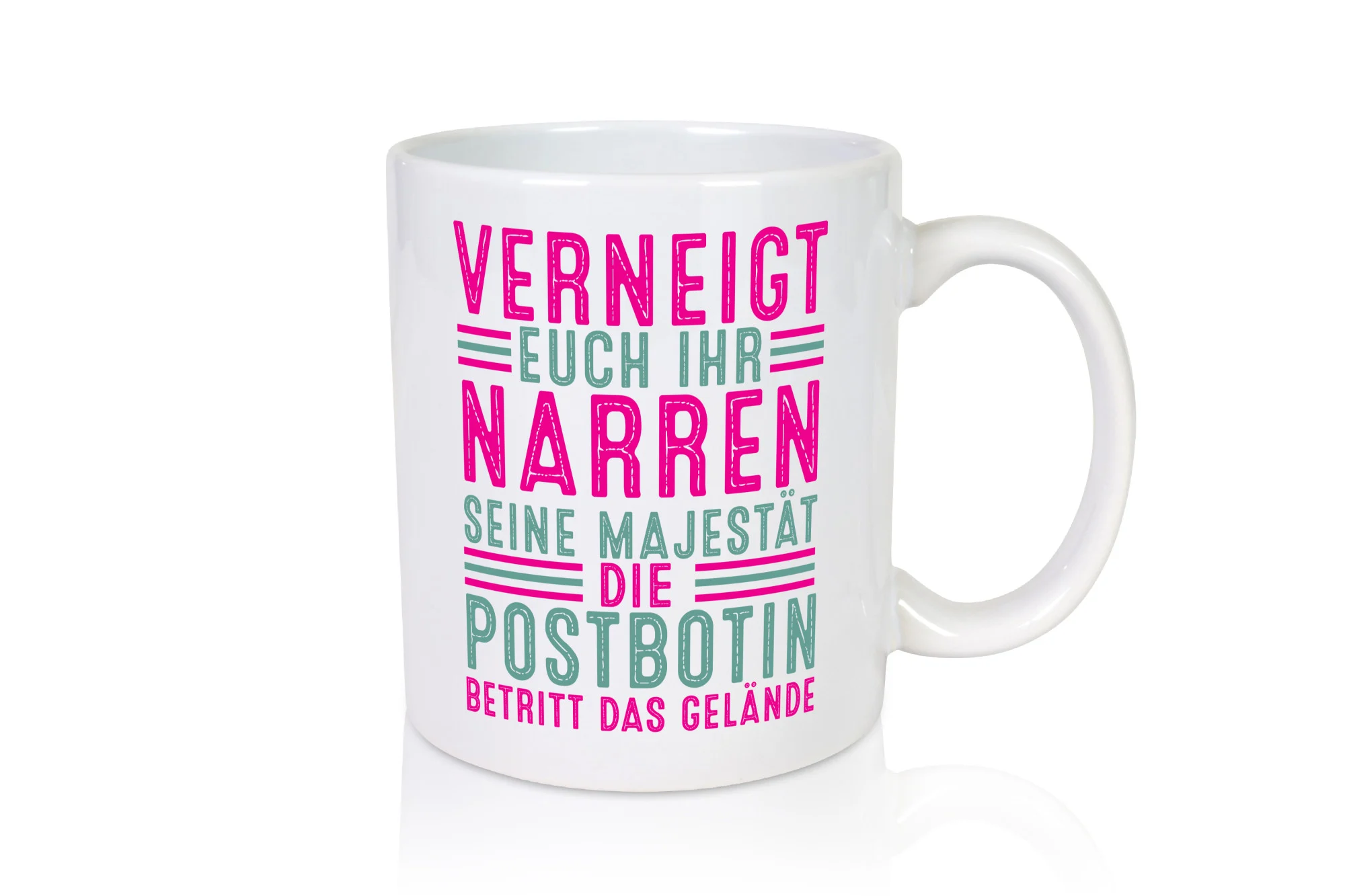 Verneigt euch: Postbotin | Beruf Post | Briefträger – Tasse Weiß – Kaffeetasse / Geschenk / Familie