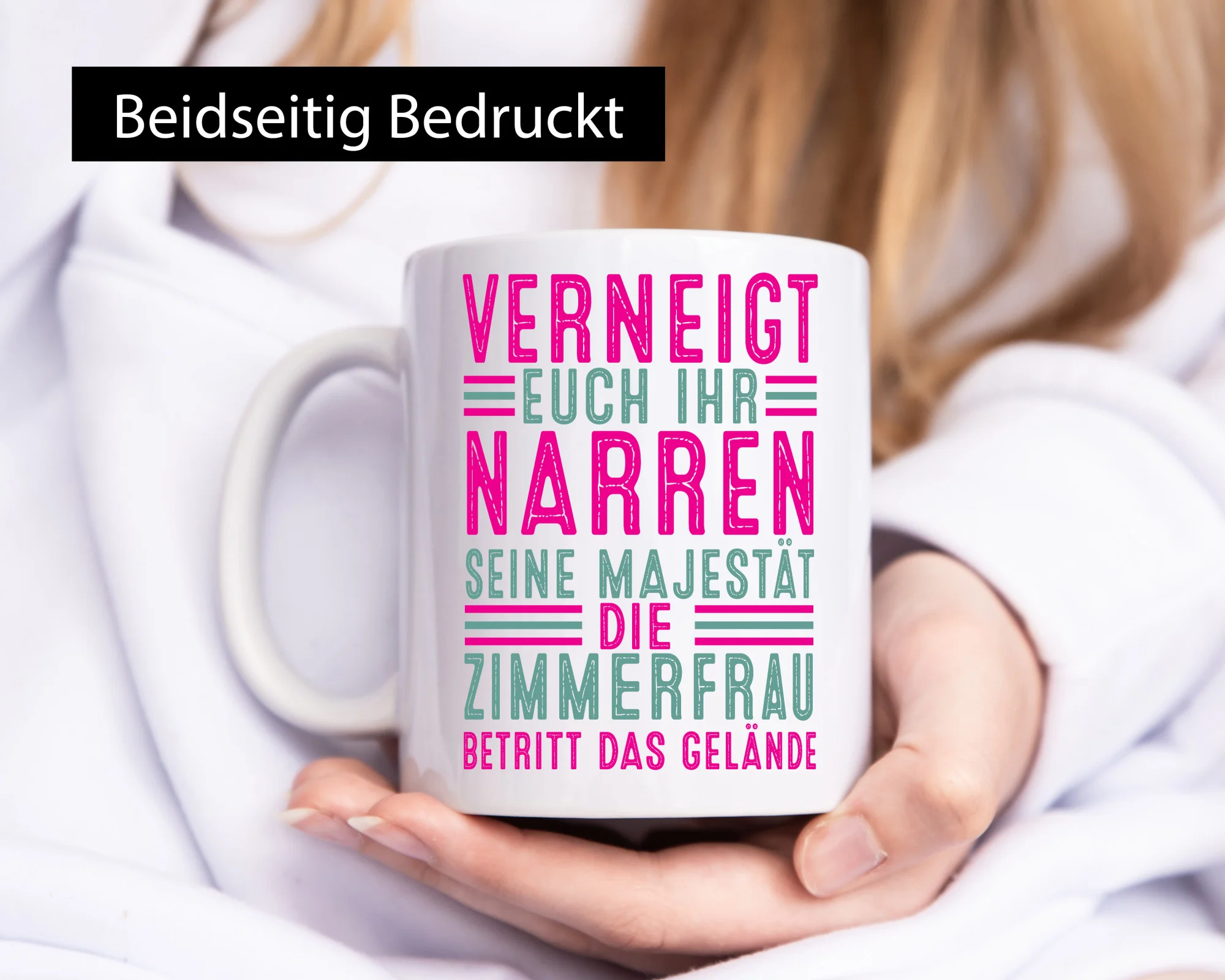 Die Tasse wird beidseitig in höchster Farbbrillanz bedruckt, sodass sie sowohl für Links- als auch Rechtshänder ideal geeignet ist. Der großzügige Henkel in C-Form liegt angenehm in der Hand und sorgt auch dann für einen festen Halt, wenn die Tasse befüllt ist. So lässt sich das wärmende Heißgetränk in aller Ruhe genießen.