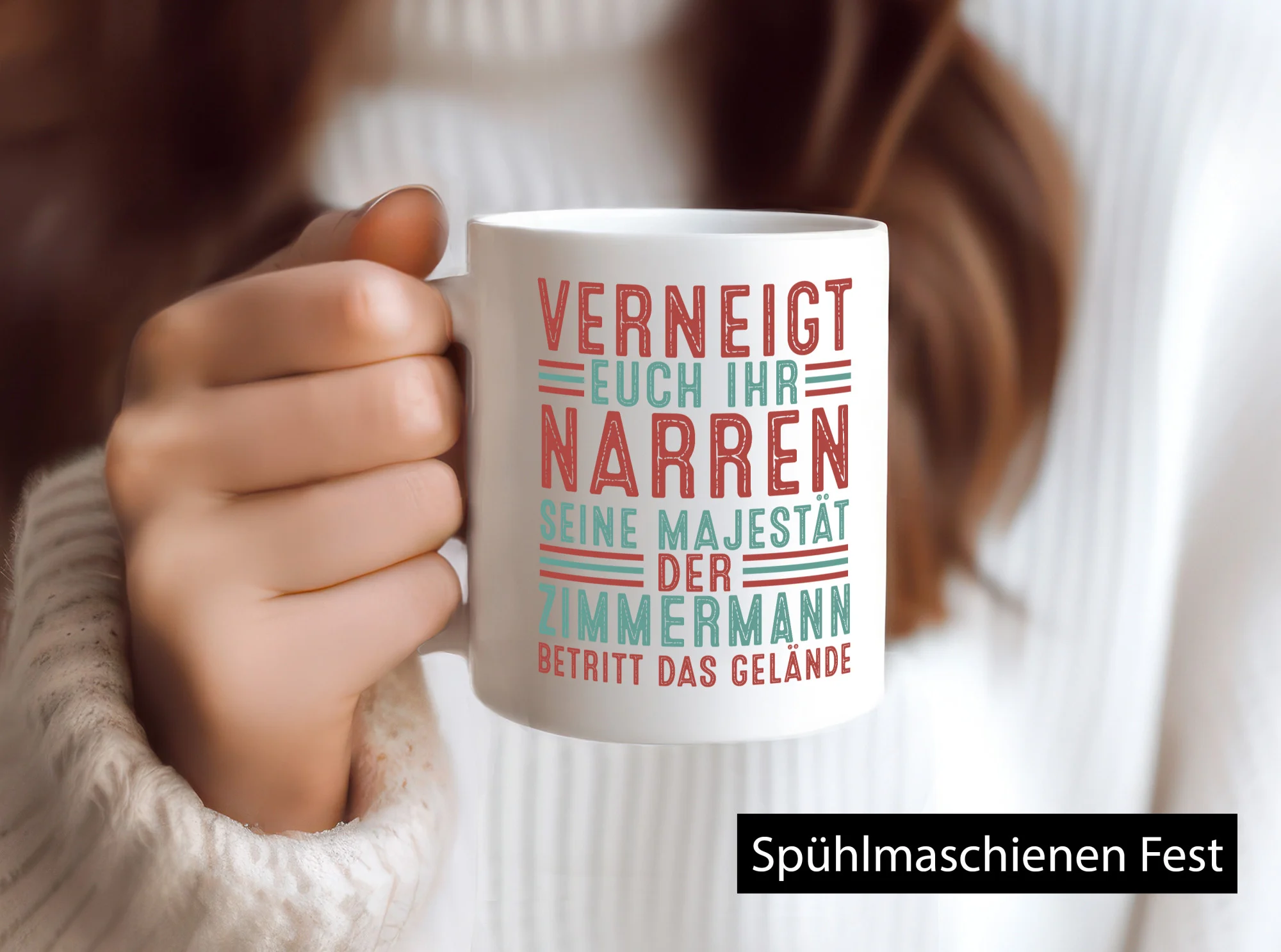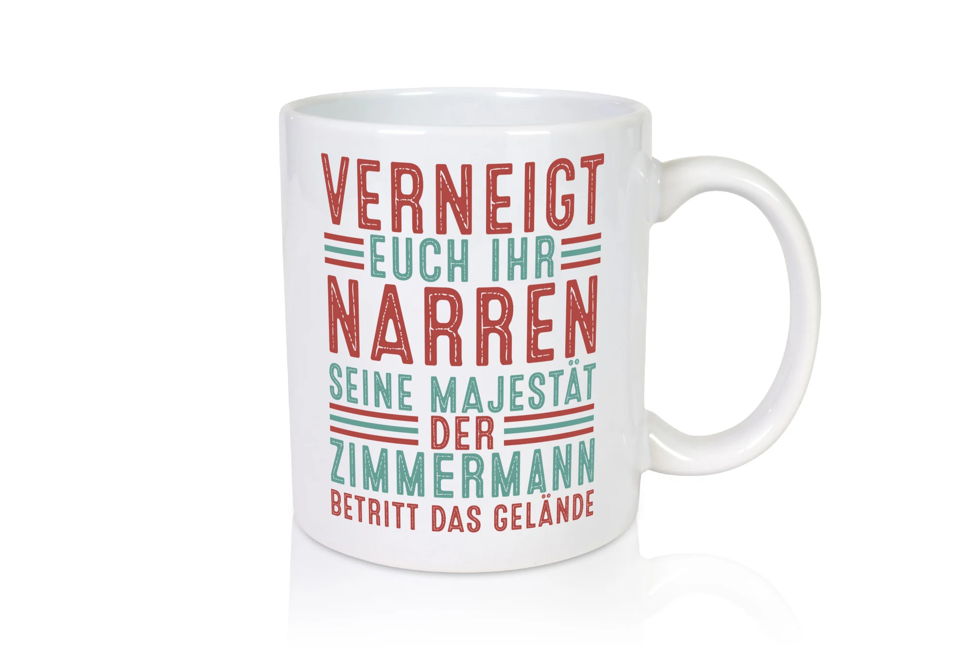 Verneigt euch: Zimmermann | Handwerker Holzbau – Tasse Weiß – Kaffeetasse / Geschenk / Familie