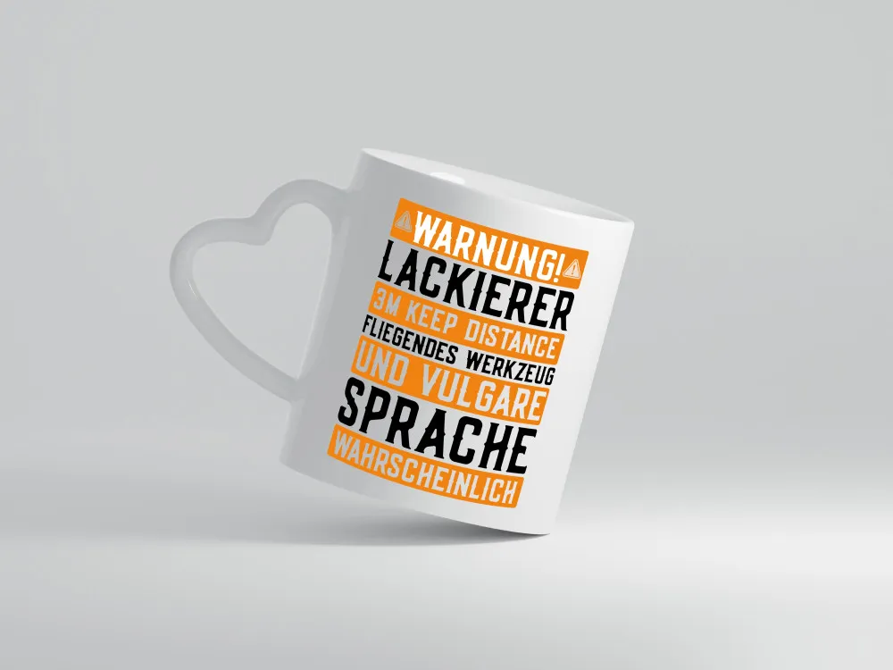 Warnung Lackierer | Warnschild | KFZ | Auto | Werkzeug – Herzhenkel Tasse – Kaffeetasse / Geschenk / Familie