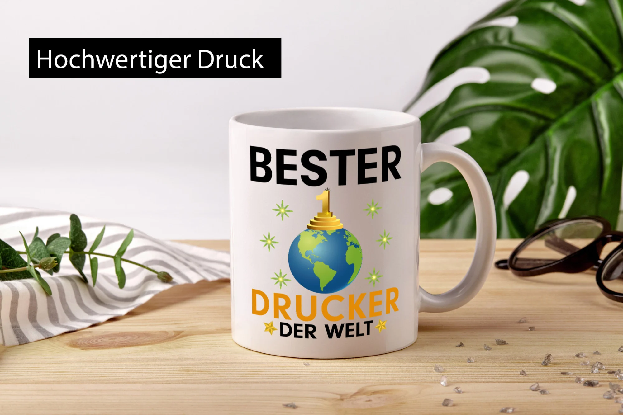 Die Tasse wird beidseitig in höchster Farbbrillanz bedruckt, sodass sie sowohl für Links- als auch Rechtshänder ideal geeignet ist. Der großzügige Henkel in C-Form liegt angenehm in der Hand und sorgt auch dann für einen festen Halt, wenn die Tasse befüllt ist. So lässt sich das wärmende Heißgetränk in aller Ruhe genießen.