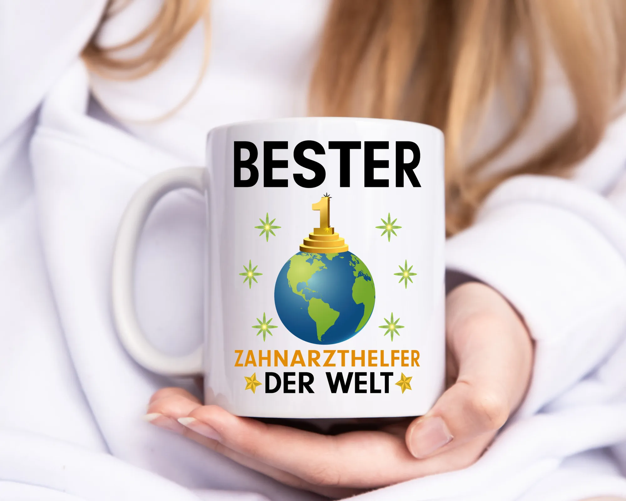 Welt Bester Zahnarzthelfer | Zahnmedizin – Tasse Weiß – Kaffeetasse / Geschenk / Familie