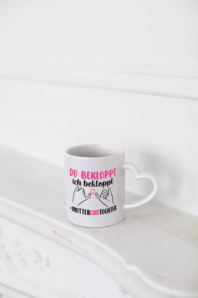 Wir sind bekloppt | mutter und Tocher | Muttertag – Herzhenkel Tasse – Kaffeetasse / Geschenk / Familie