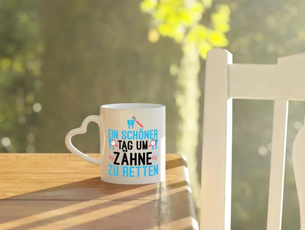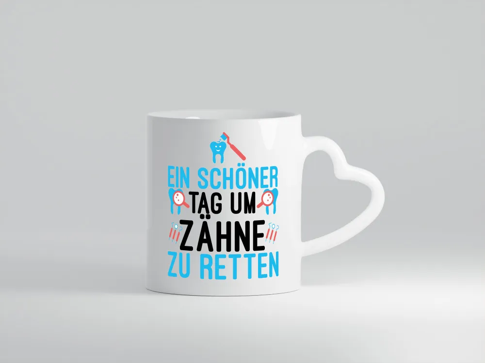 Zähne retten | Zahnarzt | Praxis | lustiger Spruch | Kollege – Herzhenkel Tasse – Kaffeetasse / Geschenk / Familie