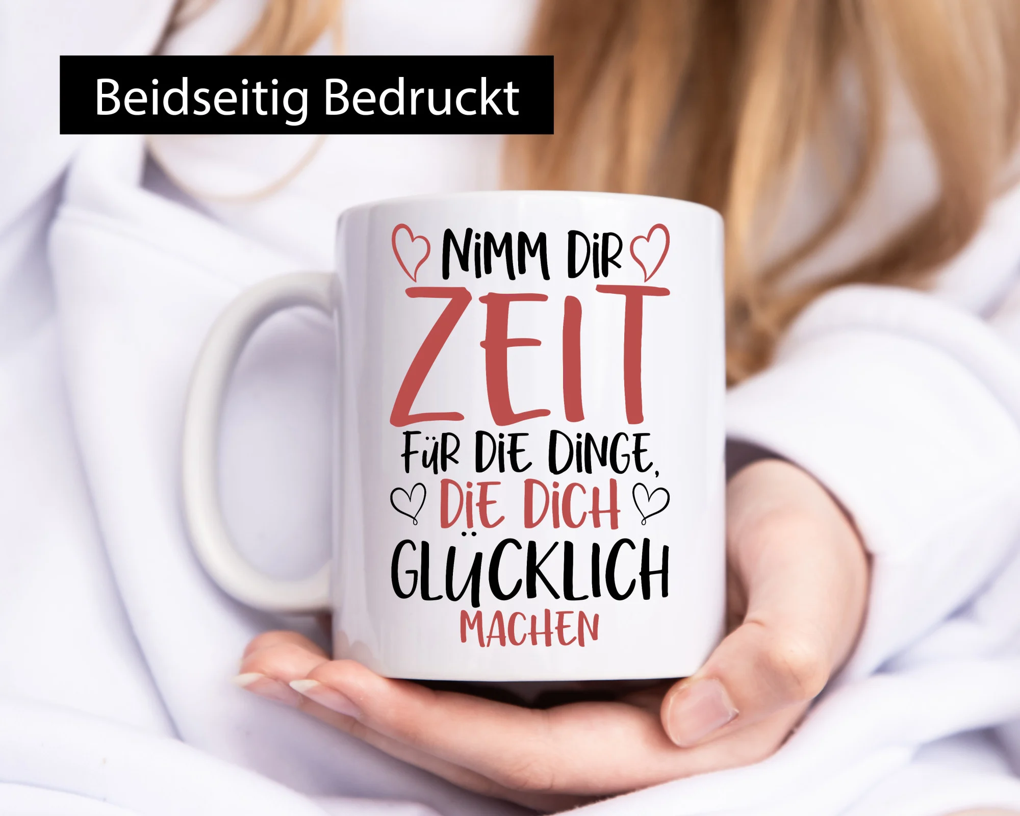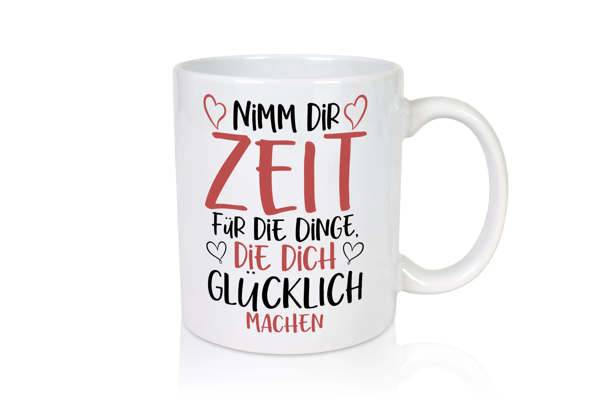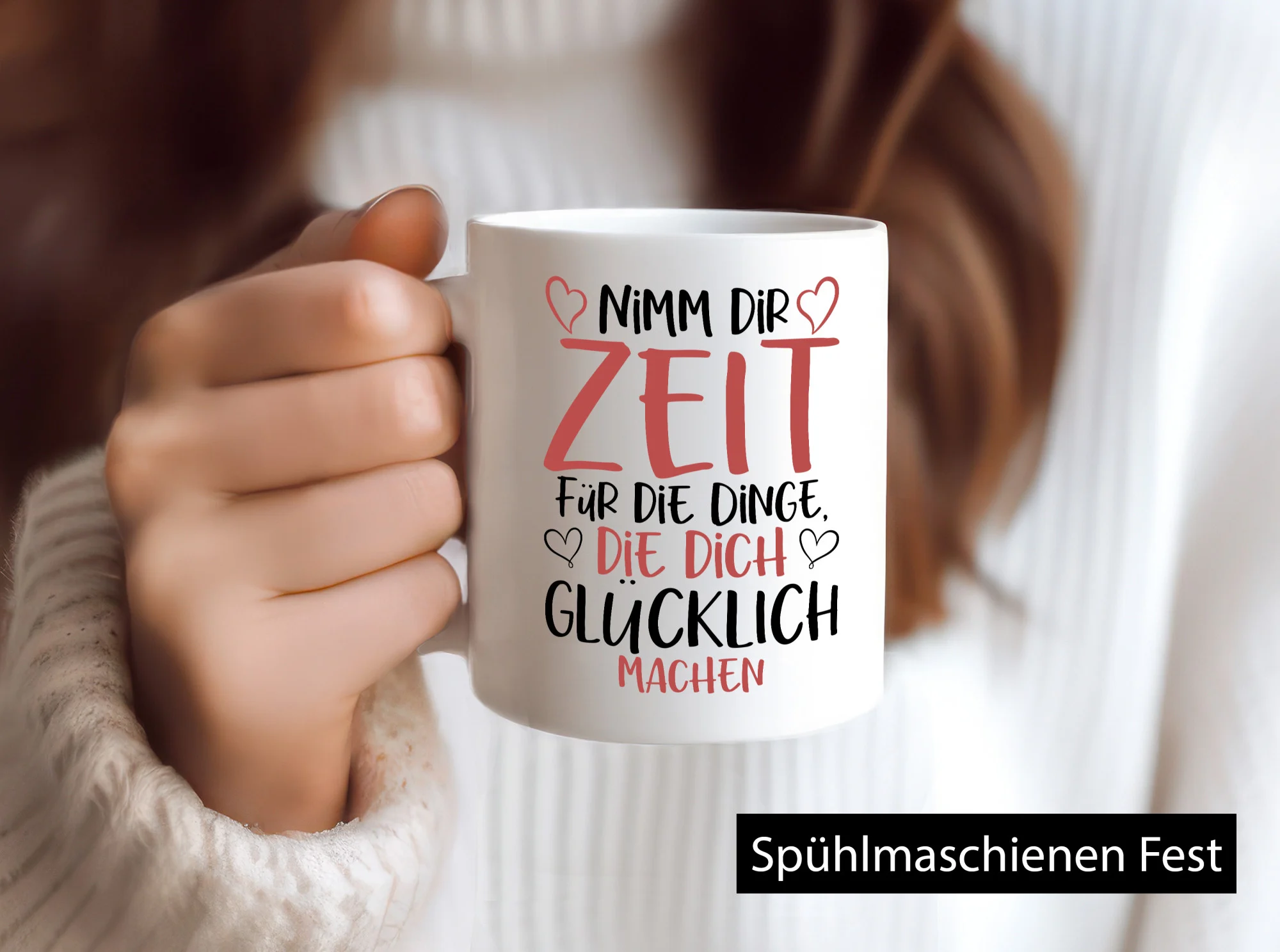 Zeit für Dinge | Glück | Lebensfreude | lieber Spruch | Herz – Tasse Weiß – Kaffeetasse / Geschenk / Familie