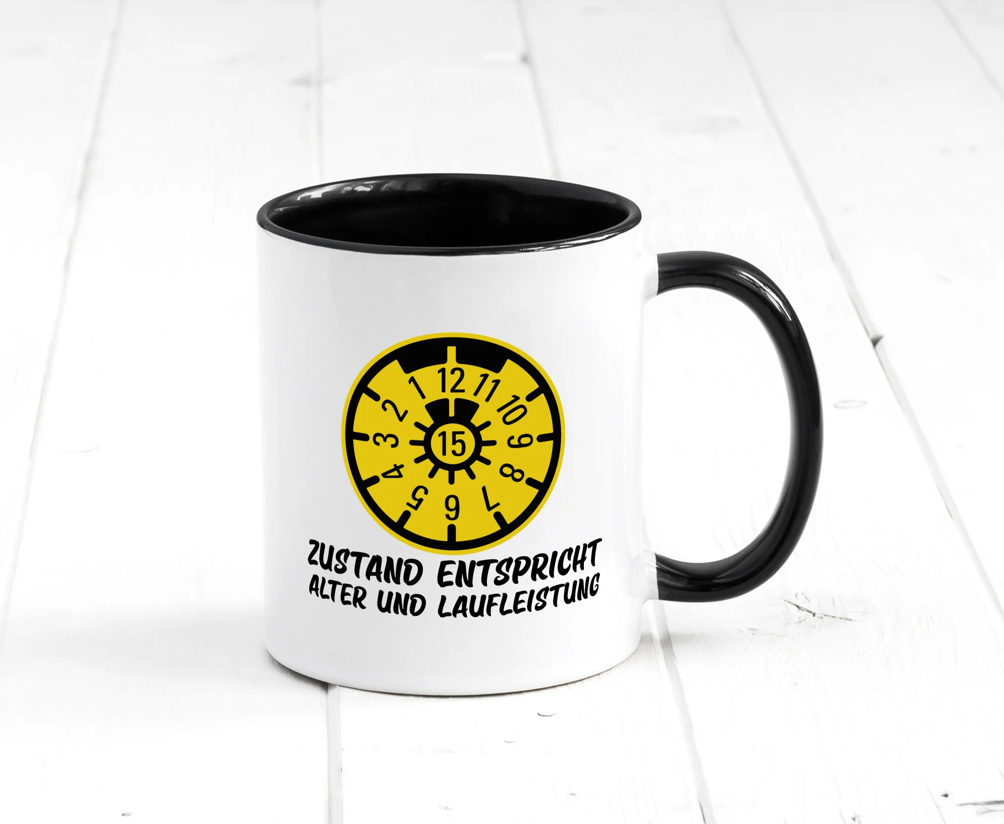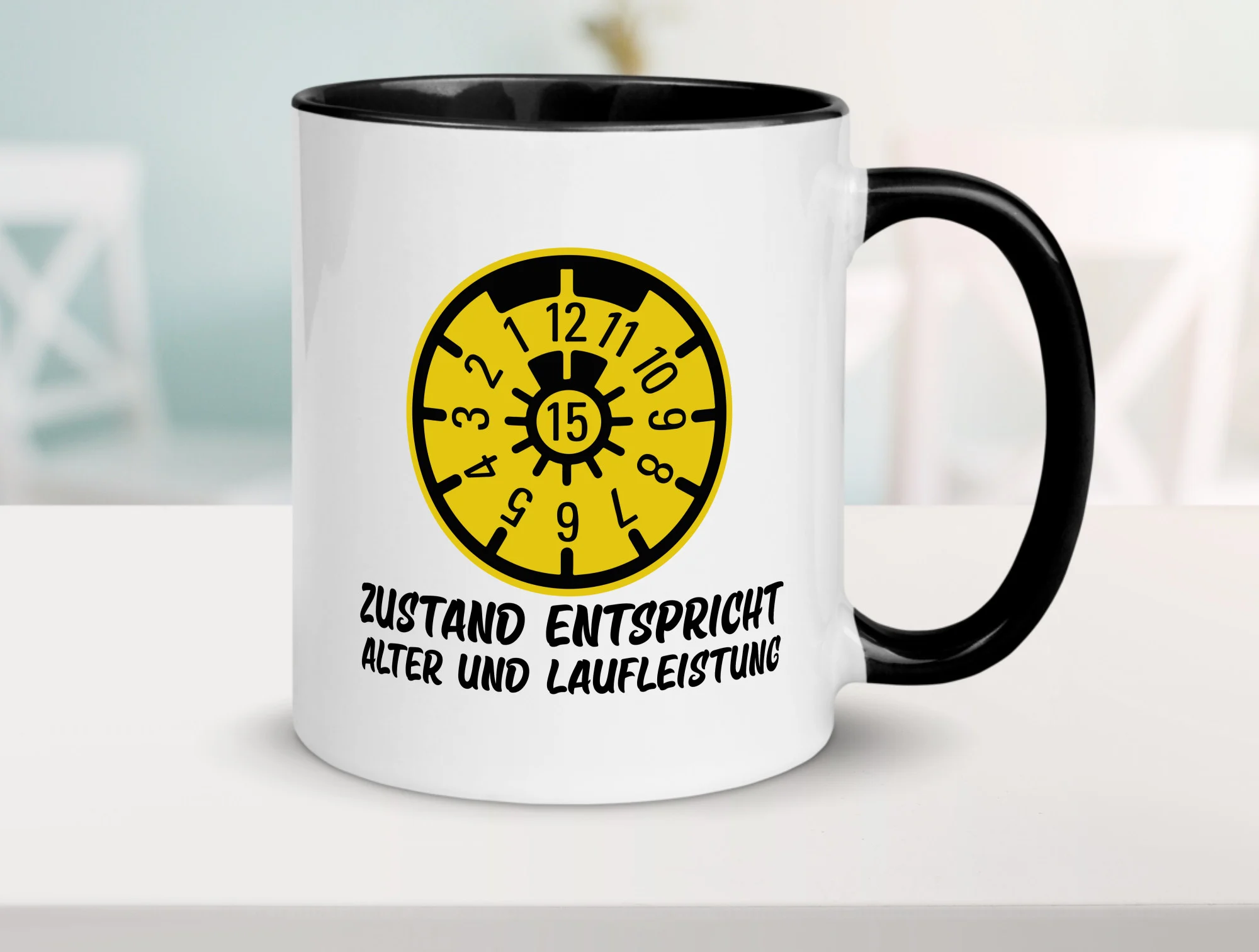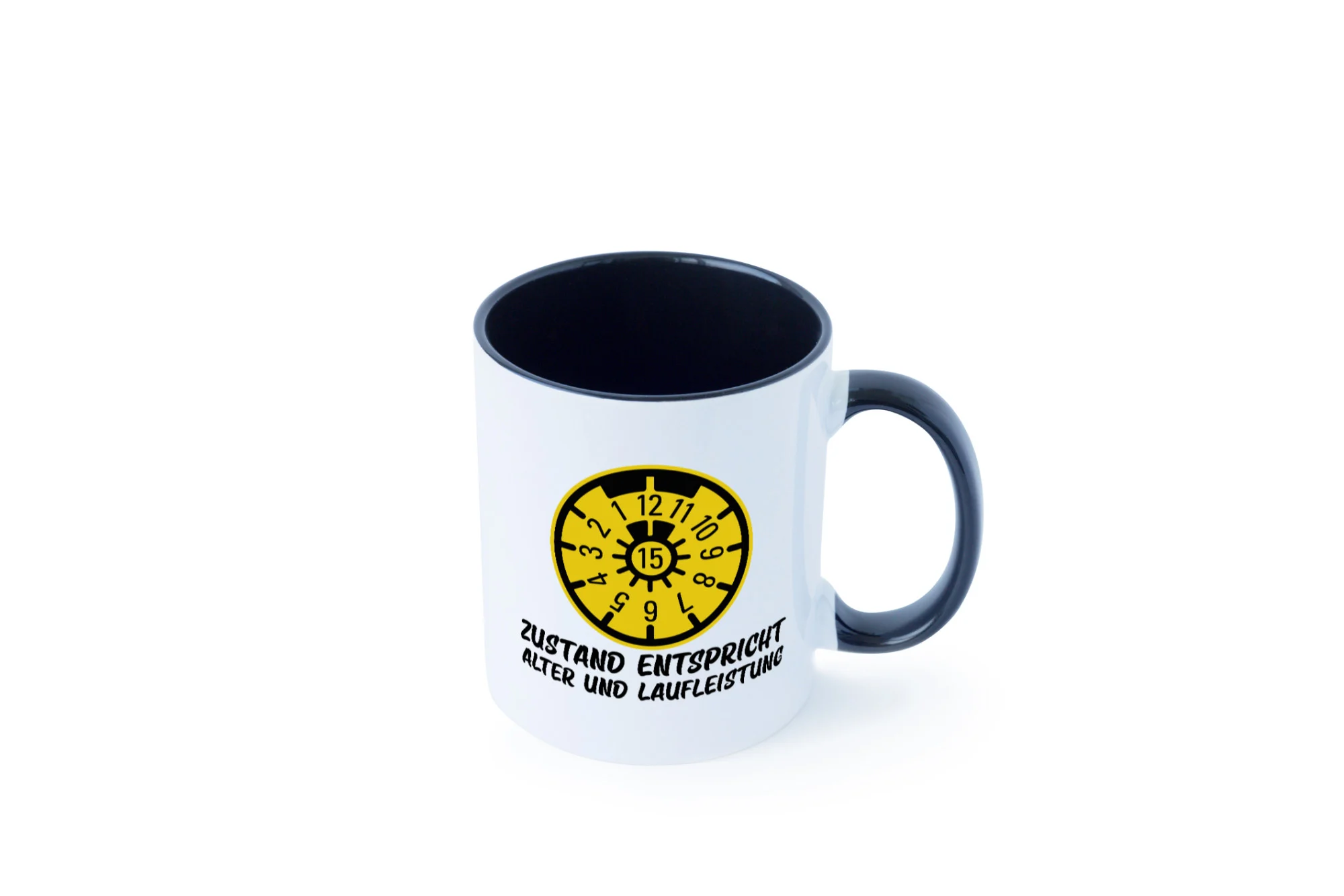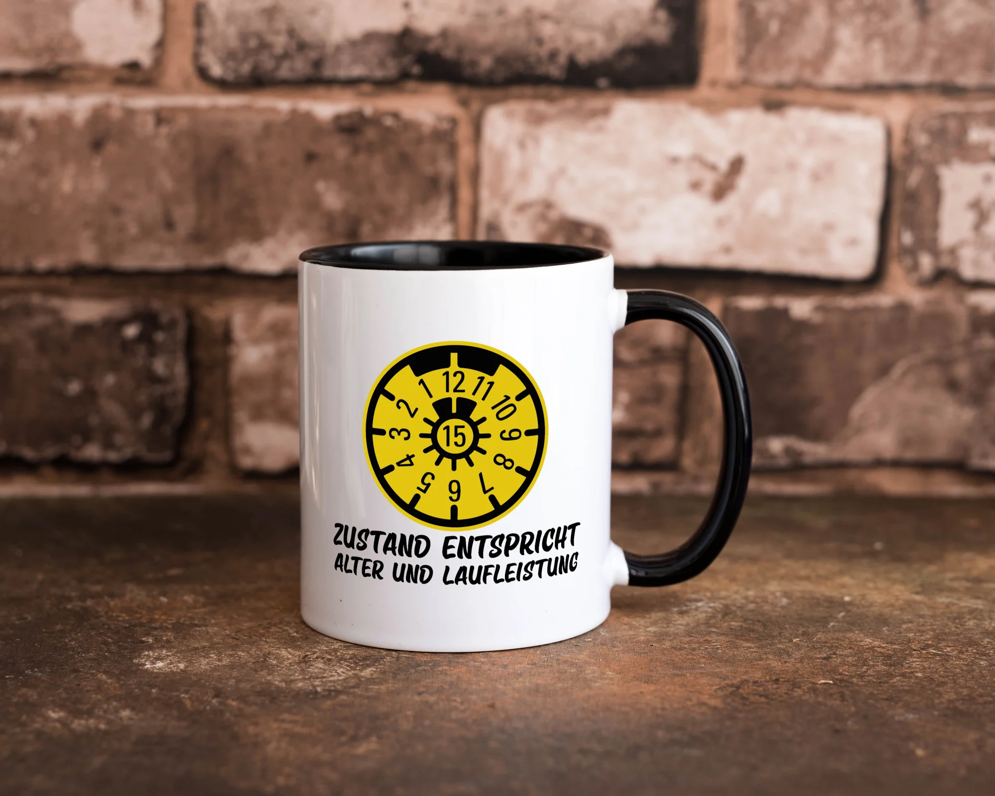 Zustand entspricht Alter und Laufleistung | Autofan | Tacho Farbige Tasse – Kaffeetasse / Geschenk / Familie