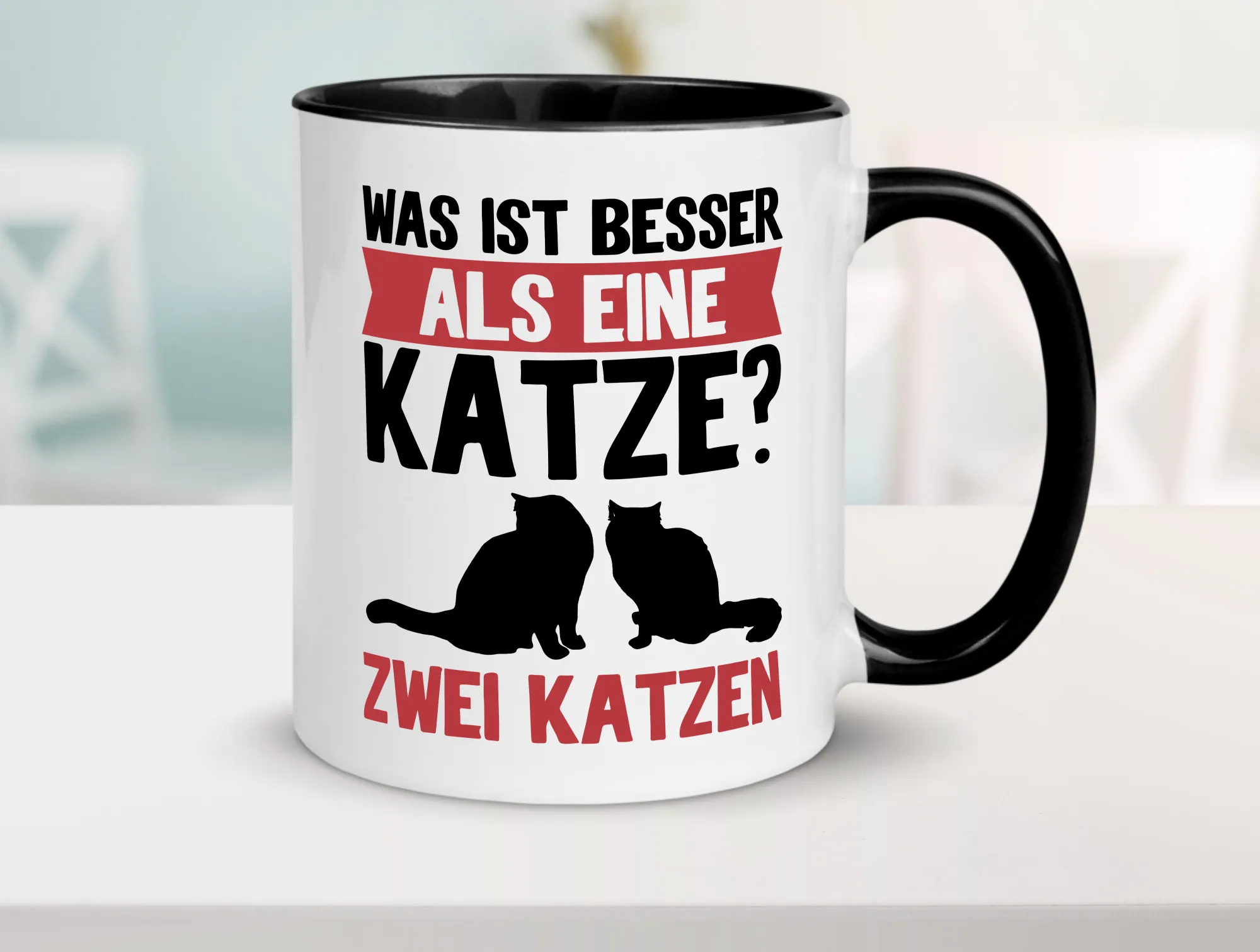 Zwei Katzen Farbige Tasse – Kaffeetasse / Geschenk / Familie