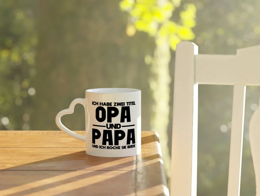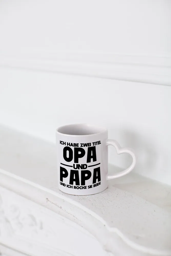 Zwei Titel, Opa, Papa, rocke beide | Opa | Papa – Herzhenkel Tasse – Kaffeetasse / Geschenk / Familie